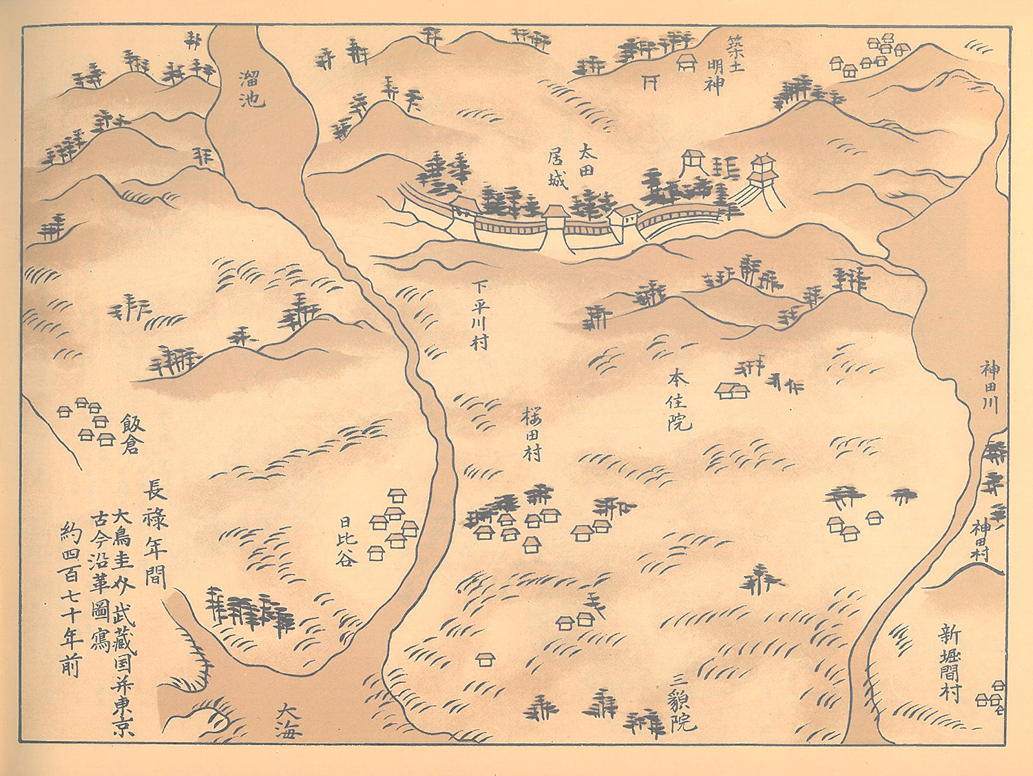 江戸は太田道灌以来の城下とはいえ、家康入城当時の江戸城は、現在の日比谷通あたりまで渚が迫り、漁民の苫屋が百戸ほどしかない侘しさで、道灌時代の「関東に甲たる」面影はなかった。