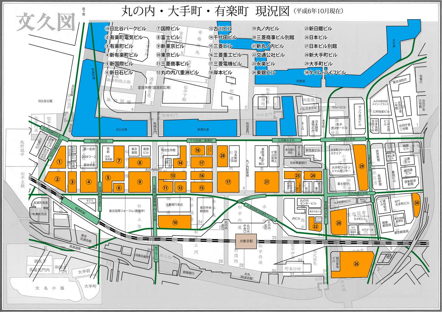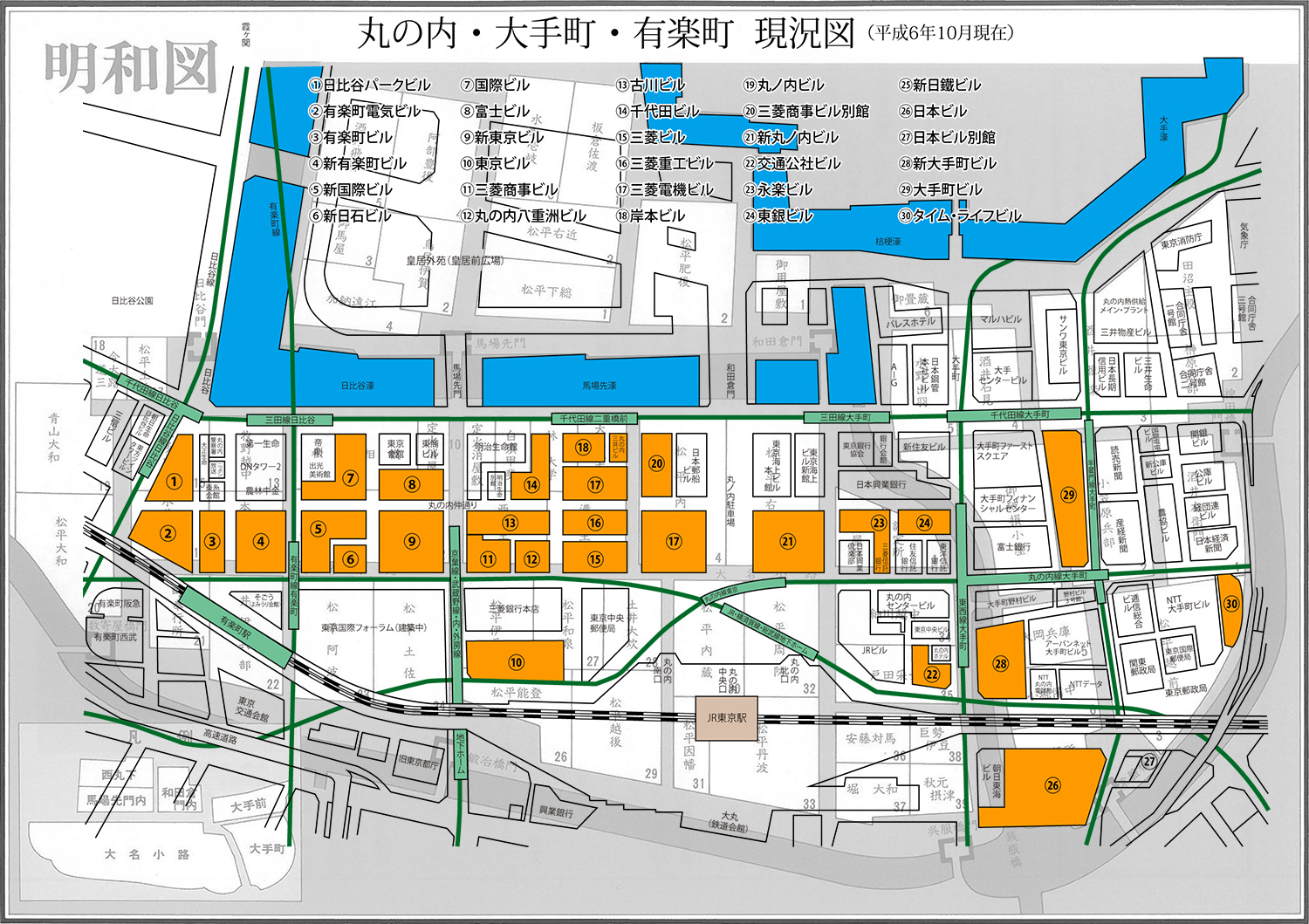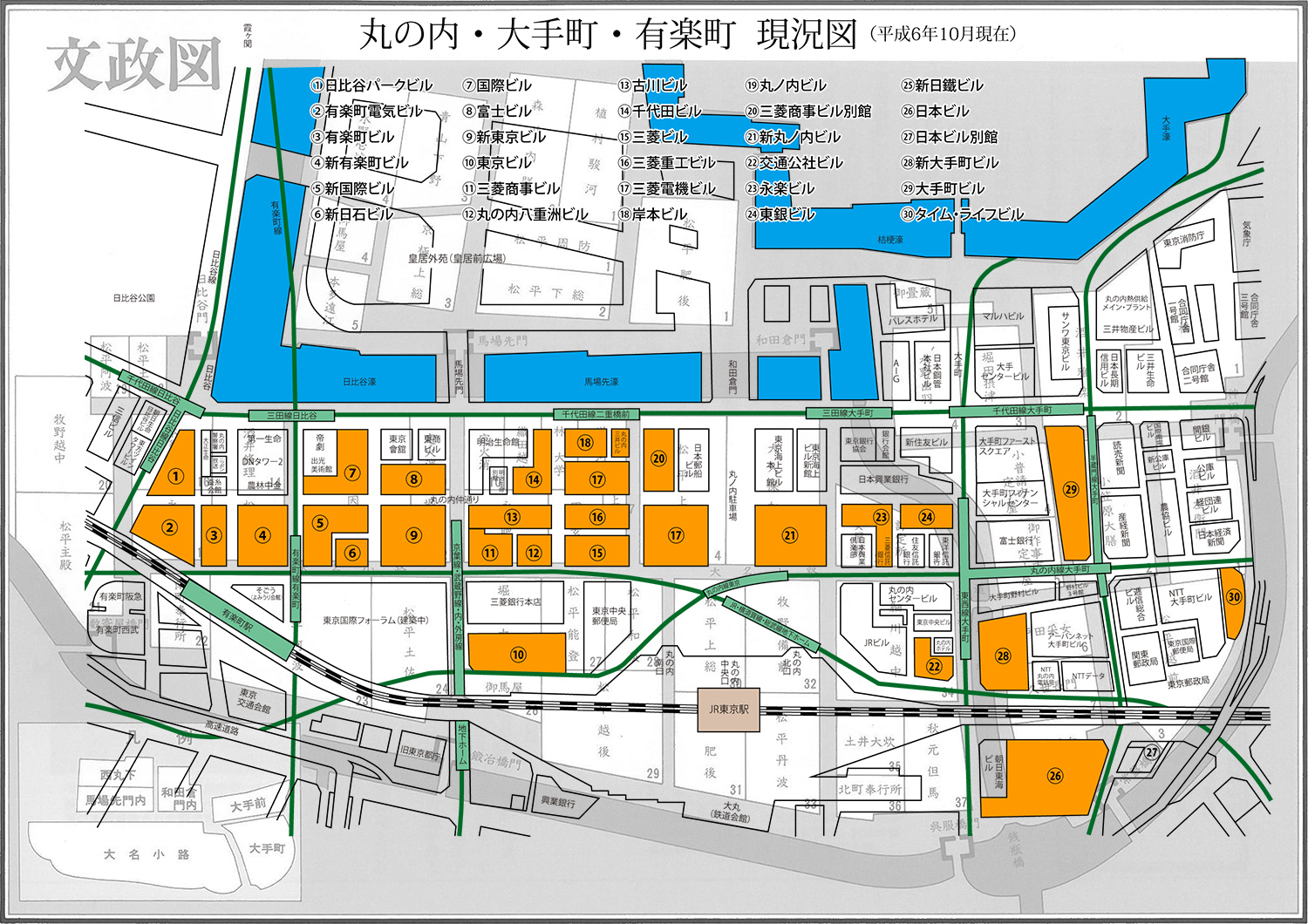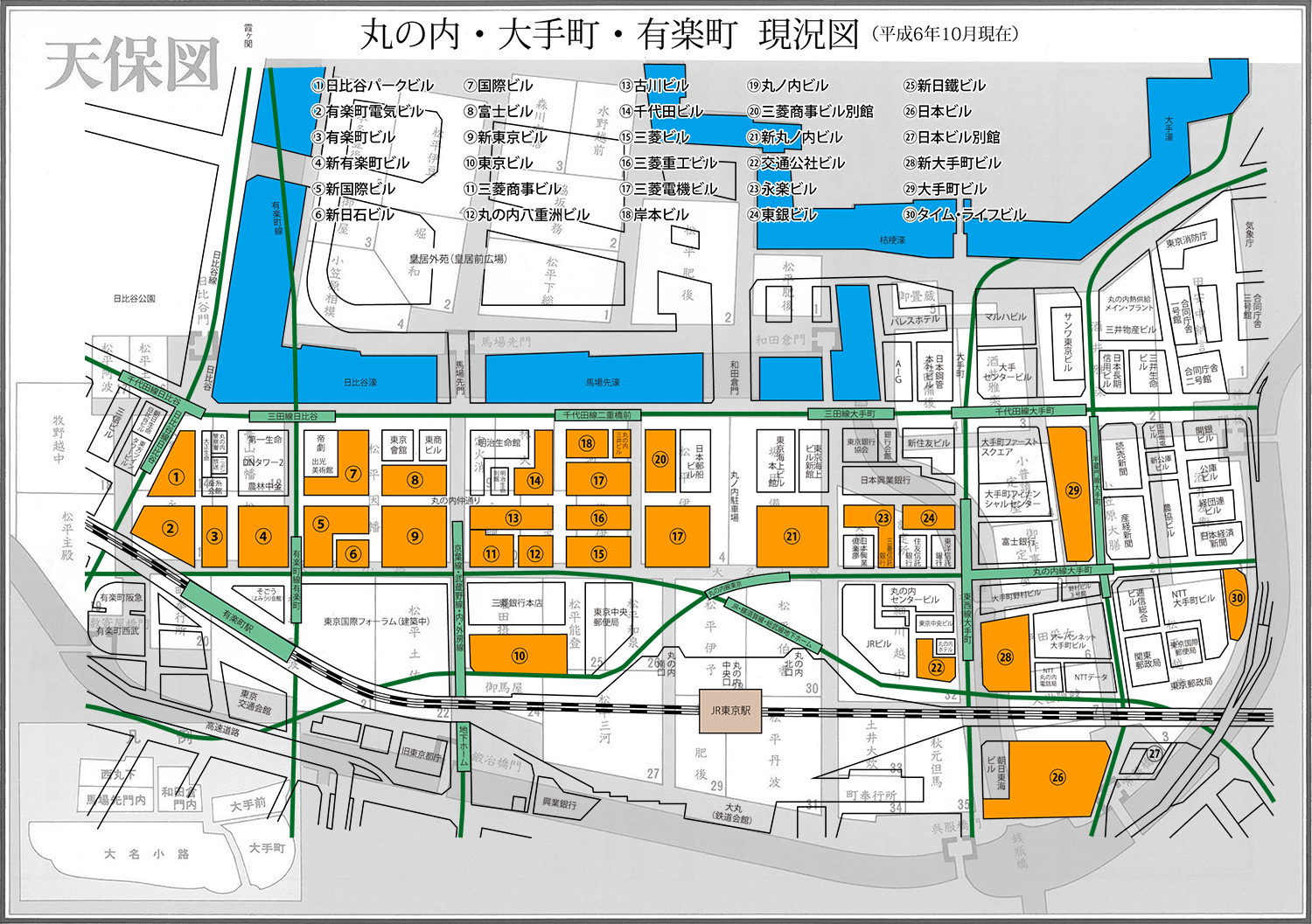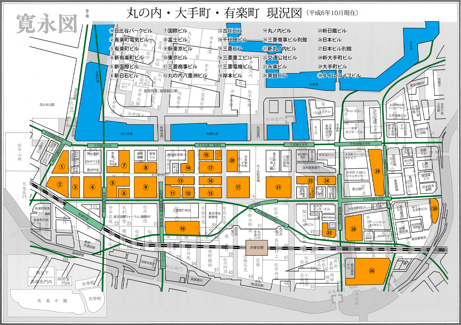 その地域は、東は外堀通りから有楽町一丁目の南端をめぐり、日比谷通りまで、南と西は皇居外苑全域と、慶長年間中期には大手門内も含んでいた。つまり、現在の大手町一・二丁目、丸の内一・二・三丁目、有楽町一丁目に該当し、我々が概念とする“丸の内”に同じである。