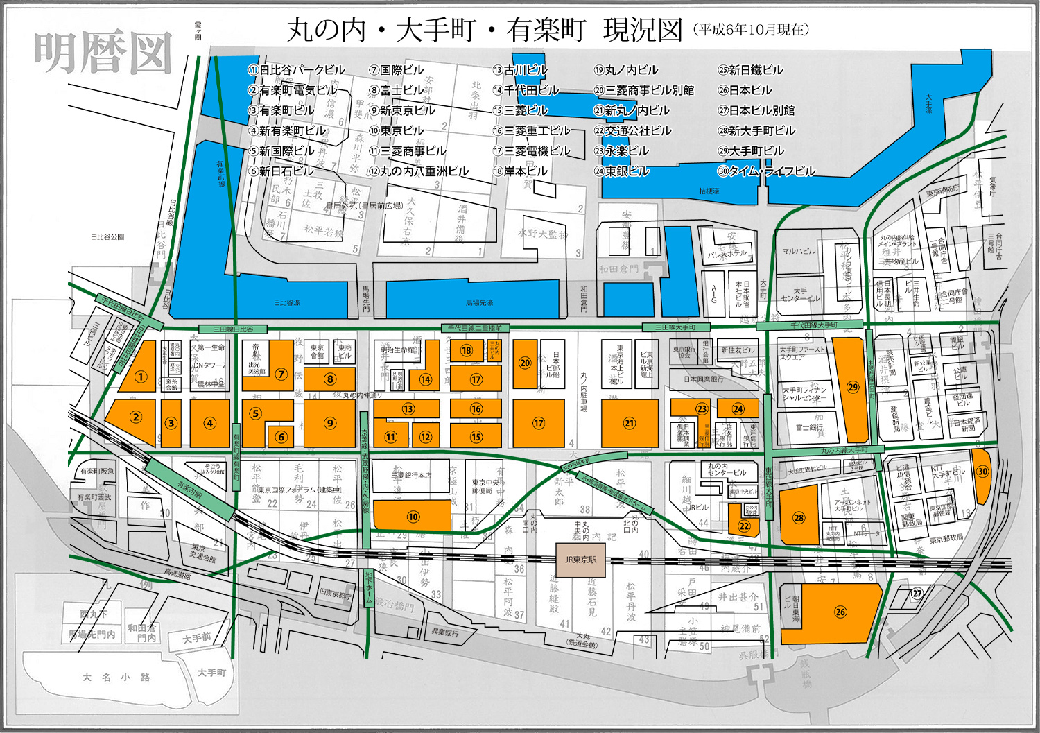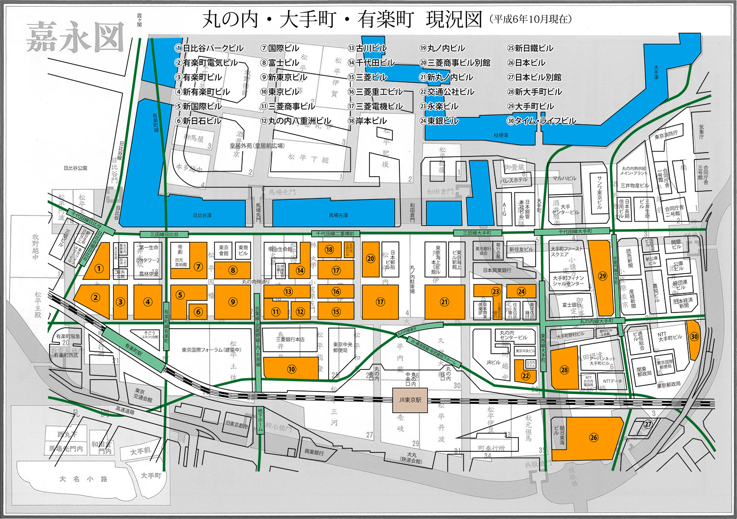 本稿はかつて日比谷パークビルに事務所を構え、丸の内の出版社として当地区に関する数々の貴重な書物を世に残してきた、株式会社菱芸出版が1995年に発行した「大名小路から丸の内へ 江戸絵図が語る丸の内三〇〇年」(非売品)から転載・抜粋したもので、要約にあたり意を損なわず若干の編集と図版を加えました。