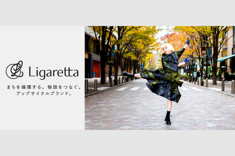 「Ligaretta」は、丸の内仲通りに掲出されたバナーフラッグを主な素材とし、権利や知的財産権の壁を克服するために施された「シークレット地紋」により、これまで活用が難しく廃棄されていたものを余すことなくアップサイクルしています。